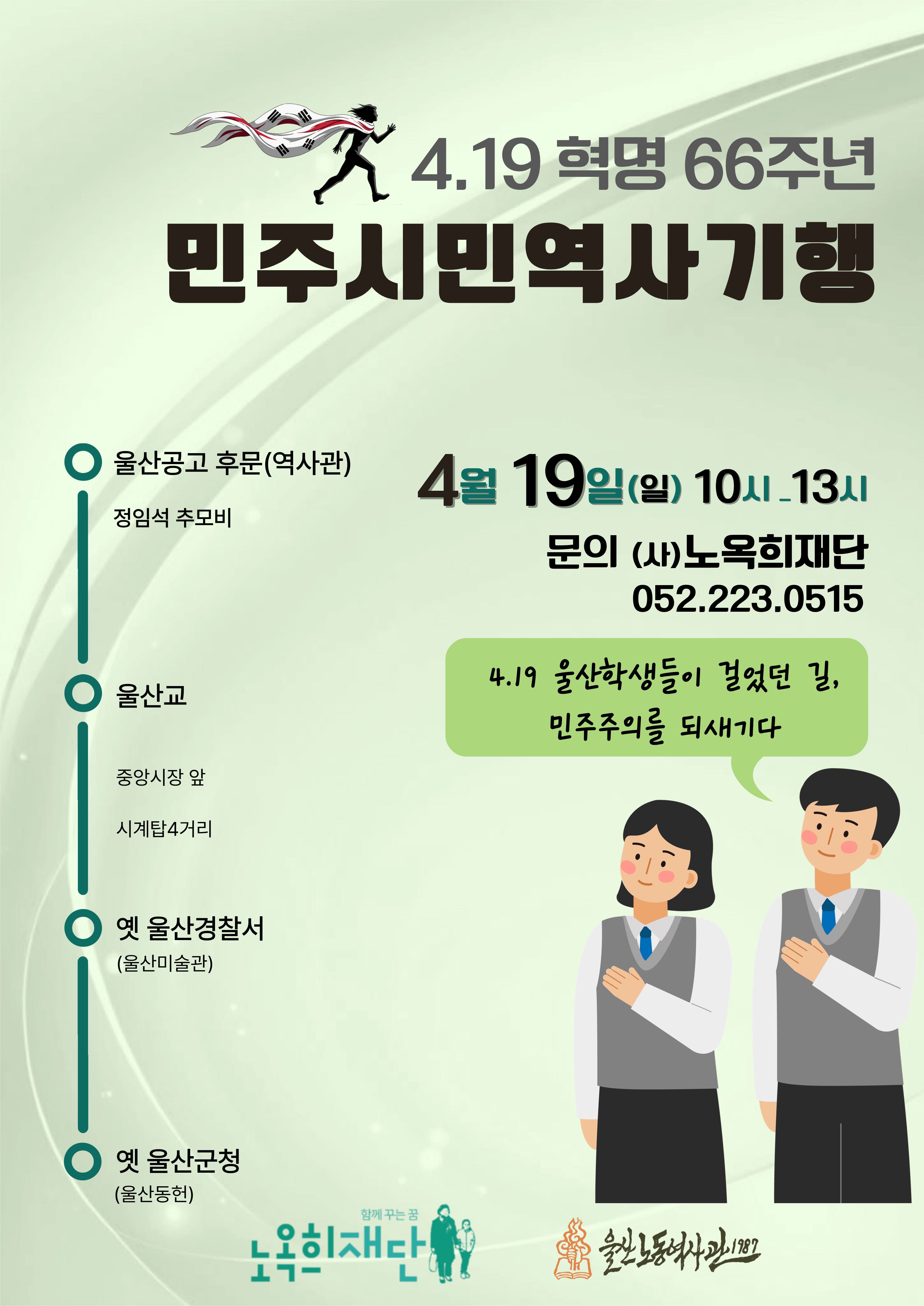 4.19혁명 66주년을 맞아 1960년 울산 학생들이 걸었던 민주주의를 외치며 걸었던 …