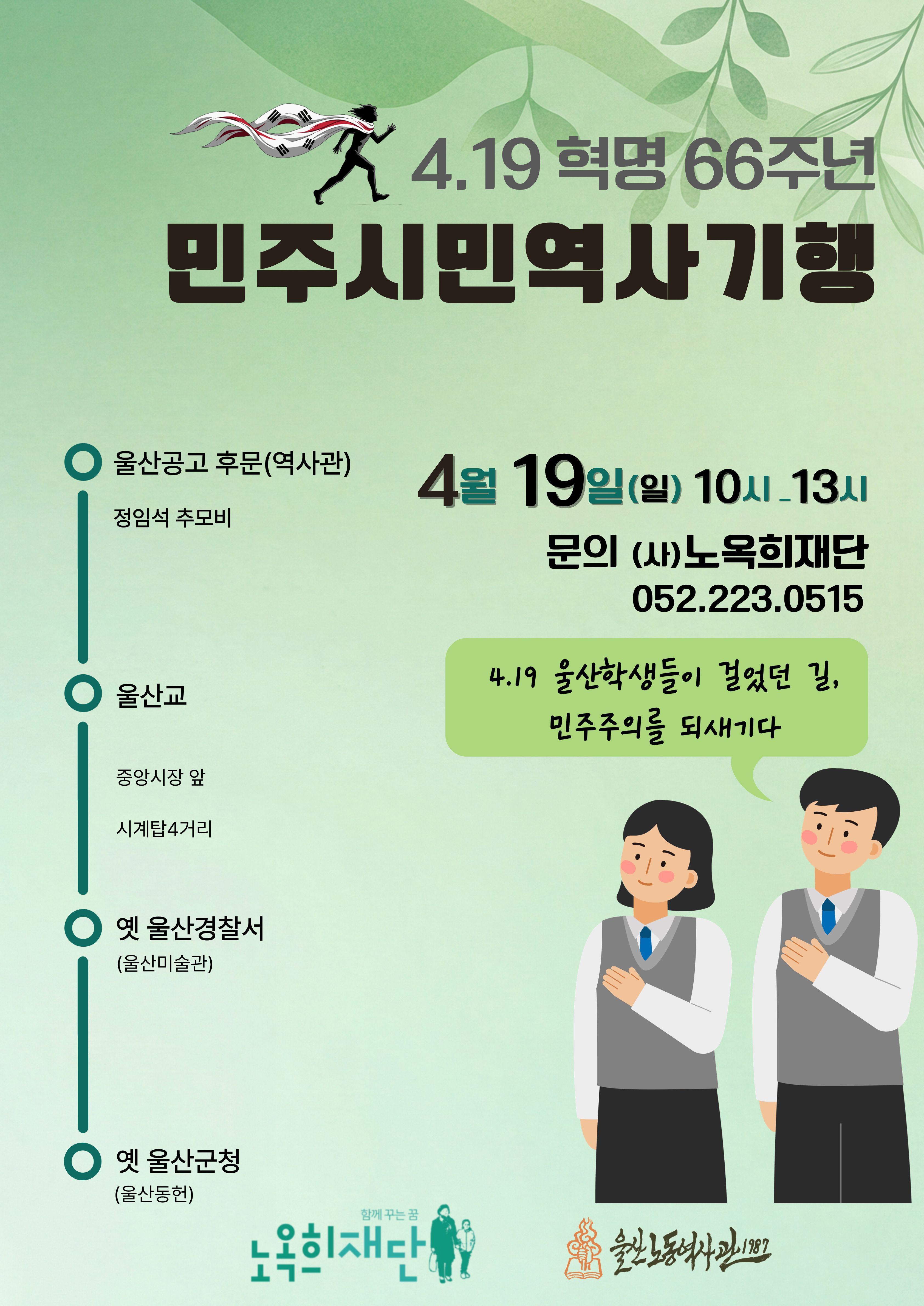 4.19혁명 66주년을 맞아 1960년 울산 학생들이 걸었던 민주주의를 외치며 걸었던 일을 따라 갑니다.
